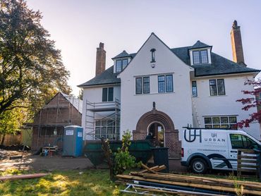 house, thoughtfully preserving its original charm and character. Key elements, such as the staircase replicated for the new second floor and the restored oak paneling and timber flooring, highlight the home’s heritage. A modern rear extension, adorned with feature glazing, seamlessly integrates with the original structure, creating a striking contrast between classic and contemporary design. The spa area underwent a complete refurbishment, encompassing the pool, gym, bathroom, and changing room. Modern updates include the installation of a comprehensive air conditioning system throughout the property and the creation of a bespoke wine cellar. Additional upgrades include a new-build garage, architectural glazing with elegant oriel windows, and contemporary timber cladding to the modernised sections of the house. The master bedroom boasts a private balcony with a frameless balustrade and a walk-on roof light. The project also features beautifully landscaped grounds, blending traditional craftsmanship with modern luxury.